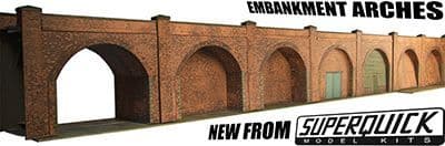 The latest kit in the Superquick range is this superbly adaptable and versatile pair of arches. In each kit you get two arch spaces that you can do lots with. Included in the kit is the option to inset the arches - with or without the unit fronts - you could create a retaining wall, either vertical or sloped - you also have the option of opening this up into a tunnel entrance or even a bridge. This kit includes instructions and will need gluing to complete.